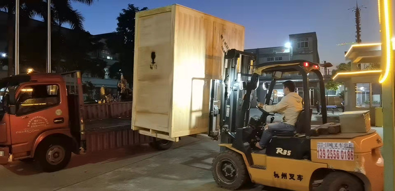 叉车司机把开合式密炼机装上货车